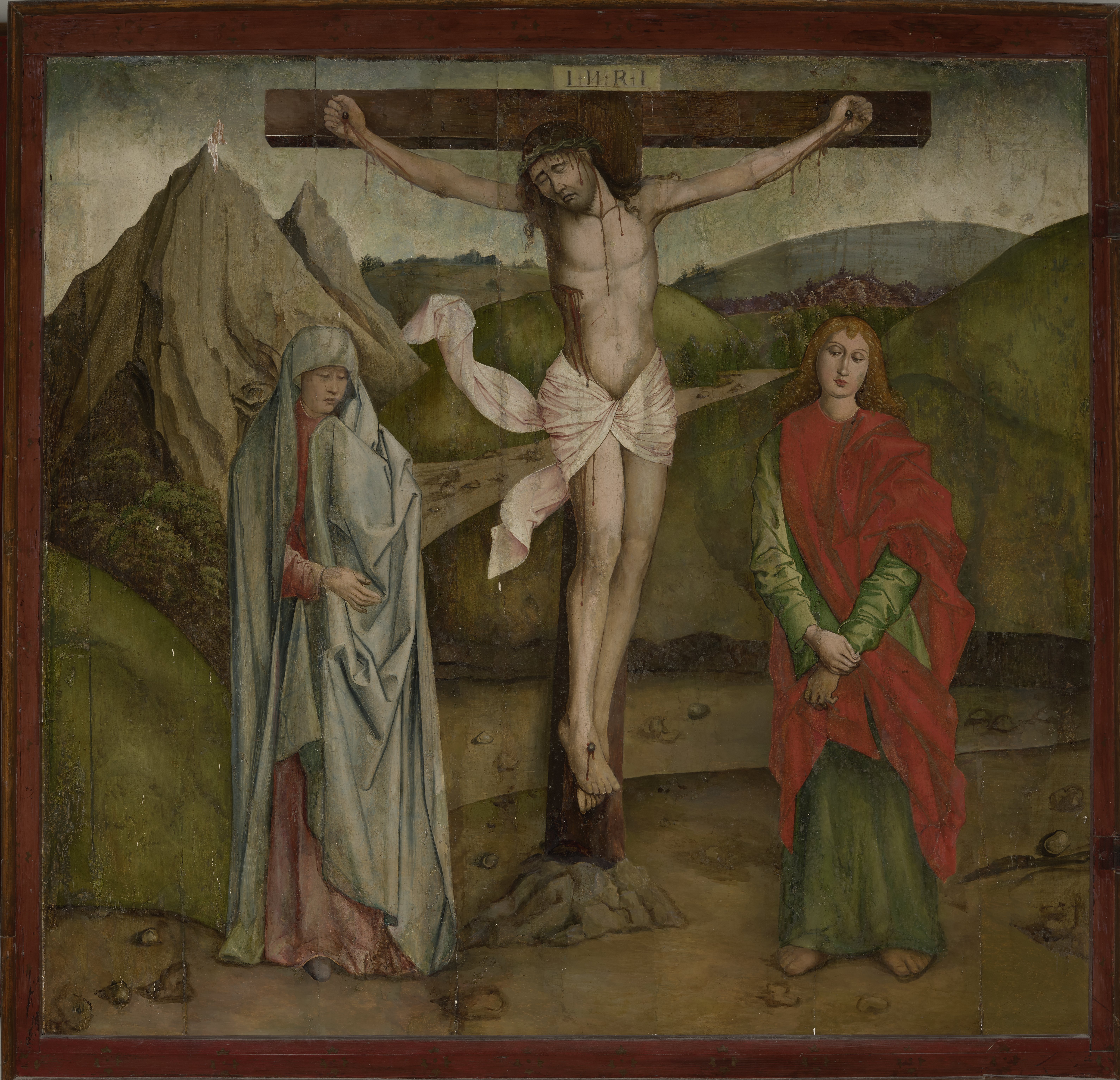 Siedmiogród (rzekomo sygnowany „Jonas Pictor Norimbergensis” co jednak niepotwierdzone) Ukrzyżowanie kwatera skrzydła nastawy ołtarzowej 1490/1500 Braszów (RO), Biserica Evanghelică C.A. din România – Parohia Brașov / Evangelical Church of the Augsburg Confession in Romania – Braşov Parish tempera na drewnie fot. Patryk Jezierski, Kacper Trzmiel /Pracownia Digitalizacji MNK