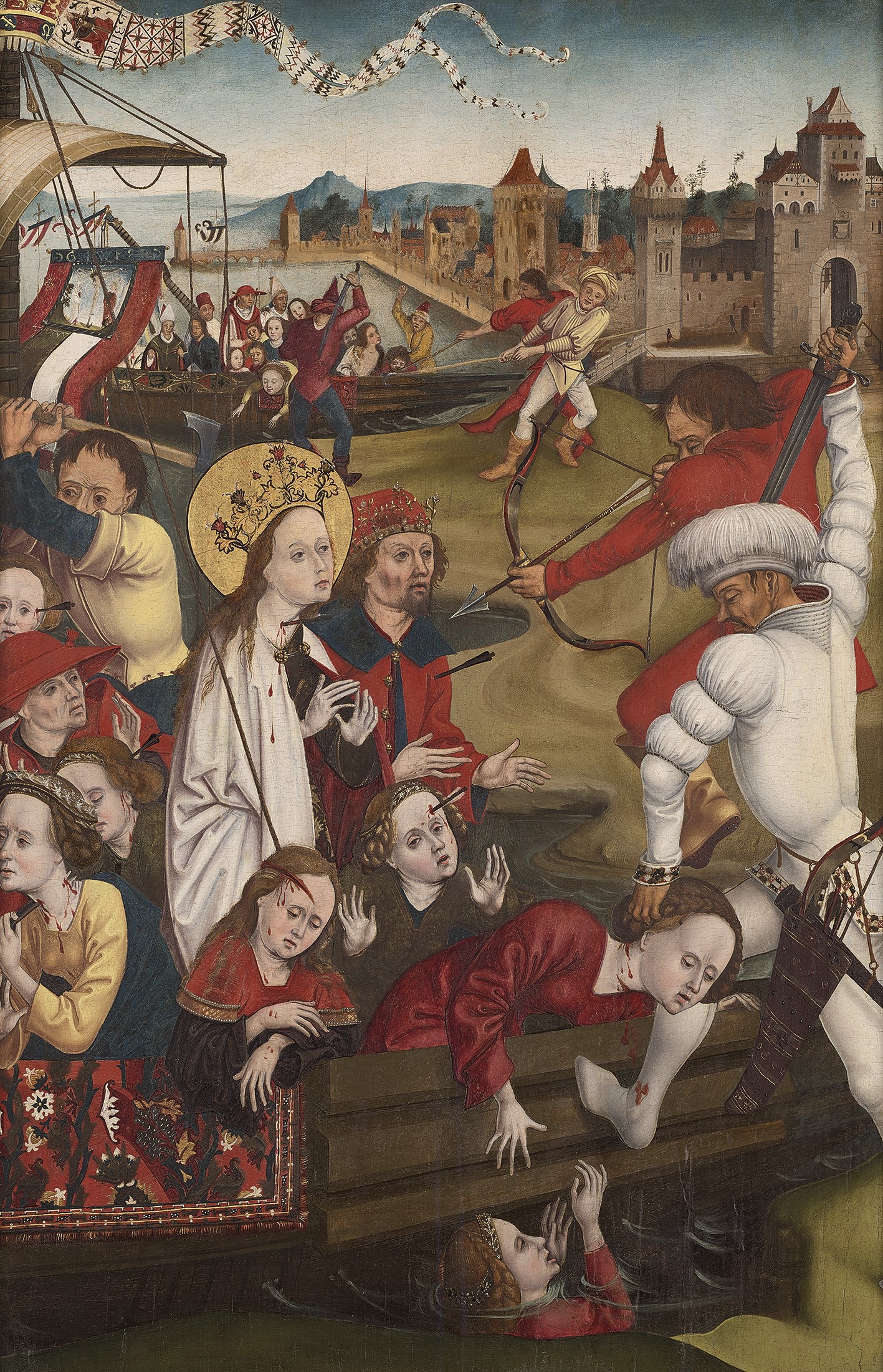 Hans Siebenbürger, czynny we Wiedniu - atrybucja Męczeństwo św. Urszuli i jej towarzyszek ok. 1480 Wiedeń (AT), Österreichische Galerie Belvedere tempera na drewnie jodły fot. Johannes Stoll / Belvedere, Wien